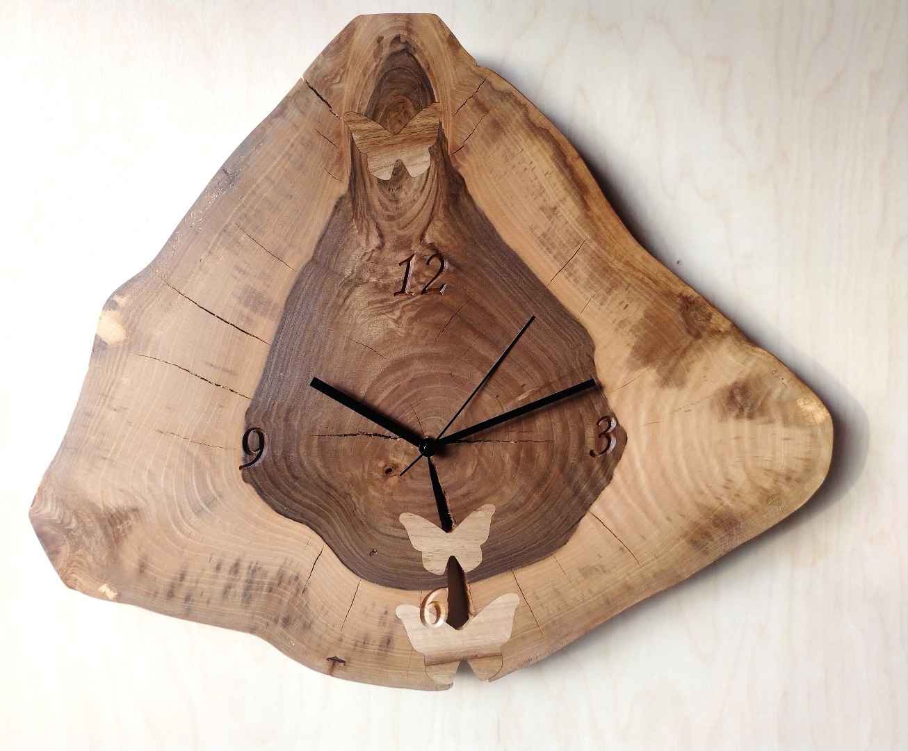 Drevené hodiny - Kmeň orecha