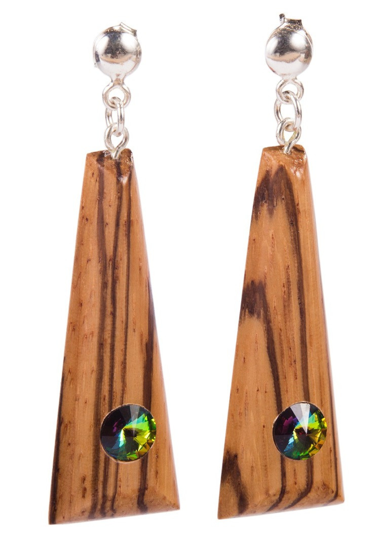 Magické a očarujúce sú náušnice " Chica ". Africká drevina zebráno, dozdobená swarovski kryštalom vitrail medium a puzetkovým uchytením z puncovaného striebra (Ag 925/1000) sú ideálnym šperkom pre Vás ktoré sa chcete cítiť ľahko a mladistvo.