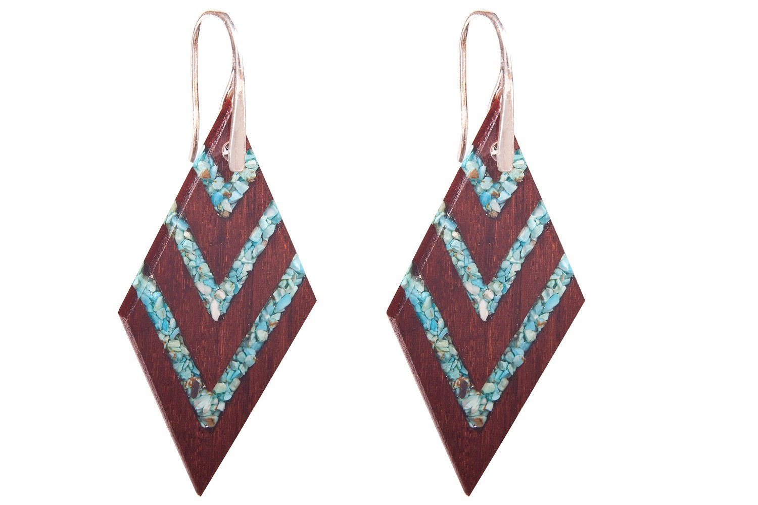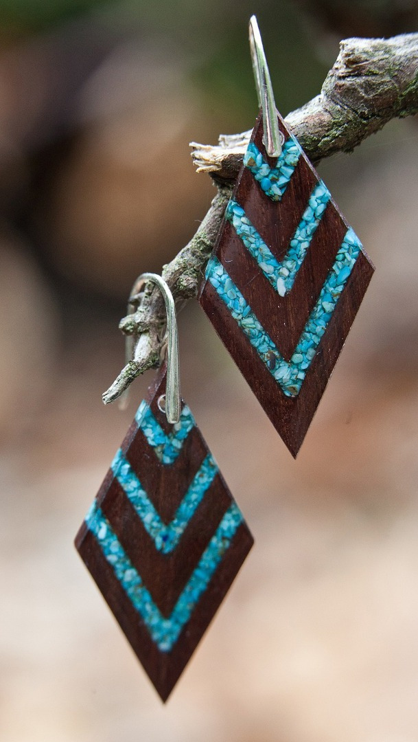 Minimalistický dizajn dokonalého prírodného šperku sa snúbi v náušniciach Viktória. Kombináciou vzácneho palisandrového dreva, tyrkysového kameňa a čistého striebra vznikol tento unikátny šperk. Napriek svojmu rozmeru 5 x 2 cm sú tieto náušničky neuveriteľne ľahučké.
